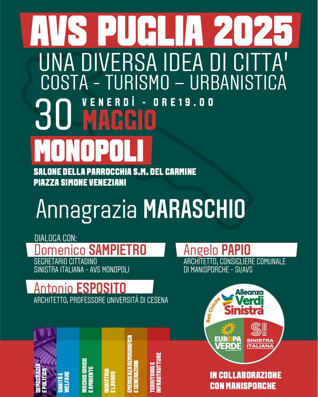 Politica Incontro a Monopoli: Alleanza Verdi e Sinistra Italiana cercano idee per stilare il programma in vista delle elezioni regionali Leggi tutto 30 Maggio 2025