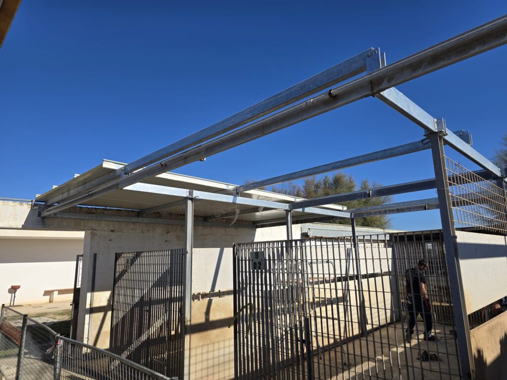 Il progetto prevede la rimozione della copertura esistente, realizzata in lastre di lamiera grecata coibentata, e la sostituzione delle travi deteriorate con nuove travi in tubolari di acciaio zincato, sulle quali sarà posata una moderna copertura coibentata. Un aspetto fondamentale del lavoro è il corretto smaltimento delle acque piovane: la nuova copertura sarà dotata di una leggera pendenza e di pluviali che convoglieranno l’acqua in pozzetti di raccolta e successivamente in una cisterna esistente o nuova, prevista per il futuro. Per non compromettere il benessere degli animali e il normale funzionamento del canile, i lavori saranno realizzati per blocchi di massimo quattro gabbie alla volta, consentendo lo spostamento temporaneo degli animali nelle aree di stabulazione libera o in altre gabbie.